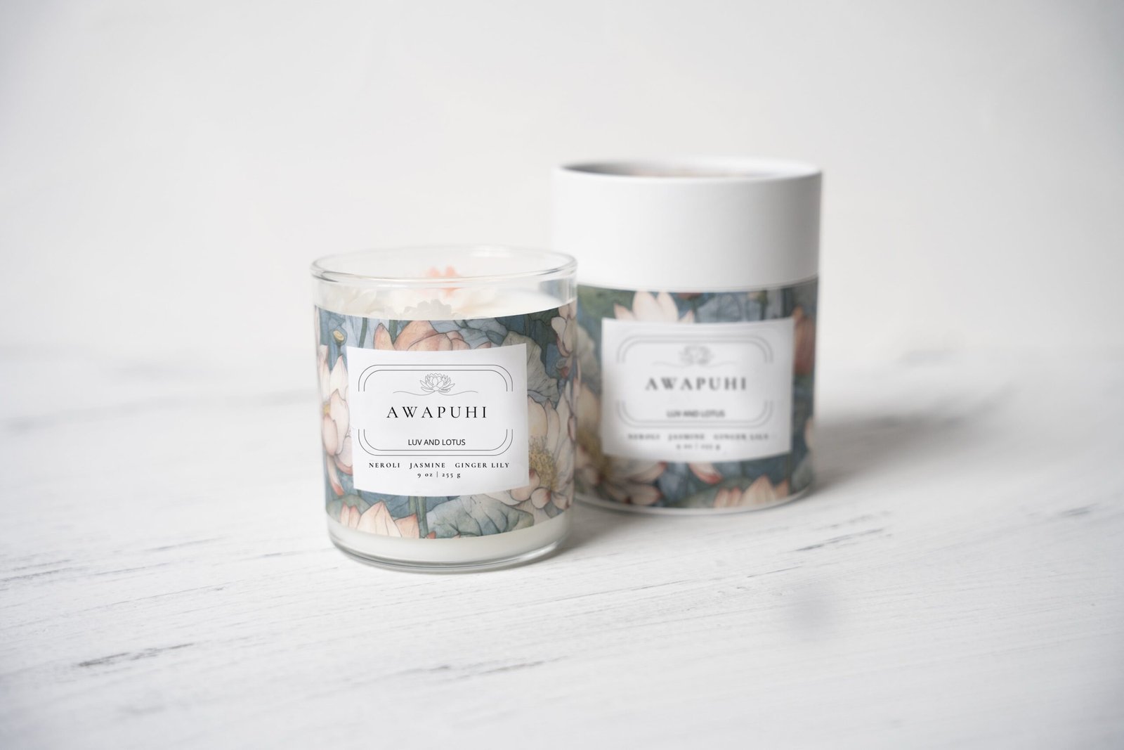 - Candle Gift Box: Each candle Is packaged in a protective white tube with our signature lotus flower label.